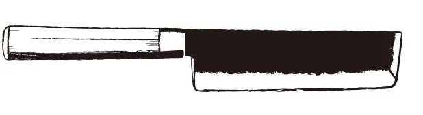 Nakiri is Japanese for: vegetable chopper. The Nakiri blade shape is traditional for Japanese vegetable knives and is mostly used for cutting all kinds of vegetables. In spite of its hatchet shape, this knife is not suitable for dissecting bones.